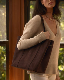 The Serena is designed for the rhythm of daily life. One side features a large, secure zip pocket, while the other houses a sleeve pocket generous enough to hold a laptop. A hook carabiner ensures your keys are always secure and accessible. The bag is instantly recognizable from its form and hardware, with logos only inside and discreetly blind embossed. Every element is considered to make this an ideal daily bag.