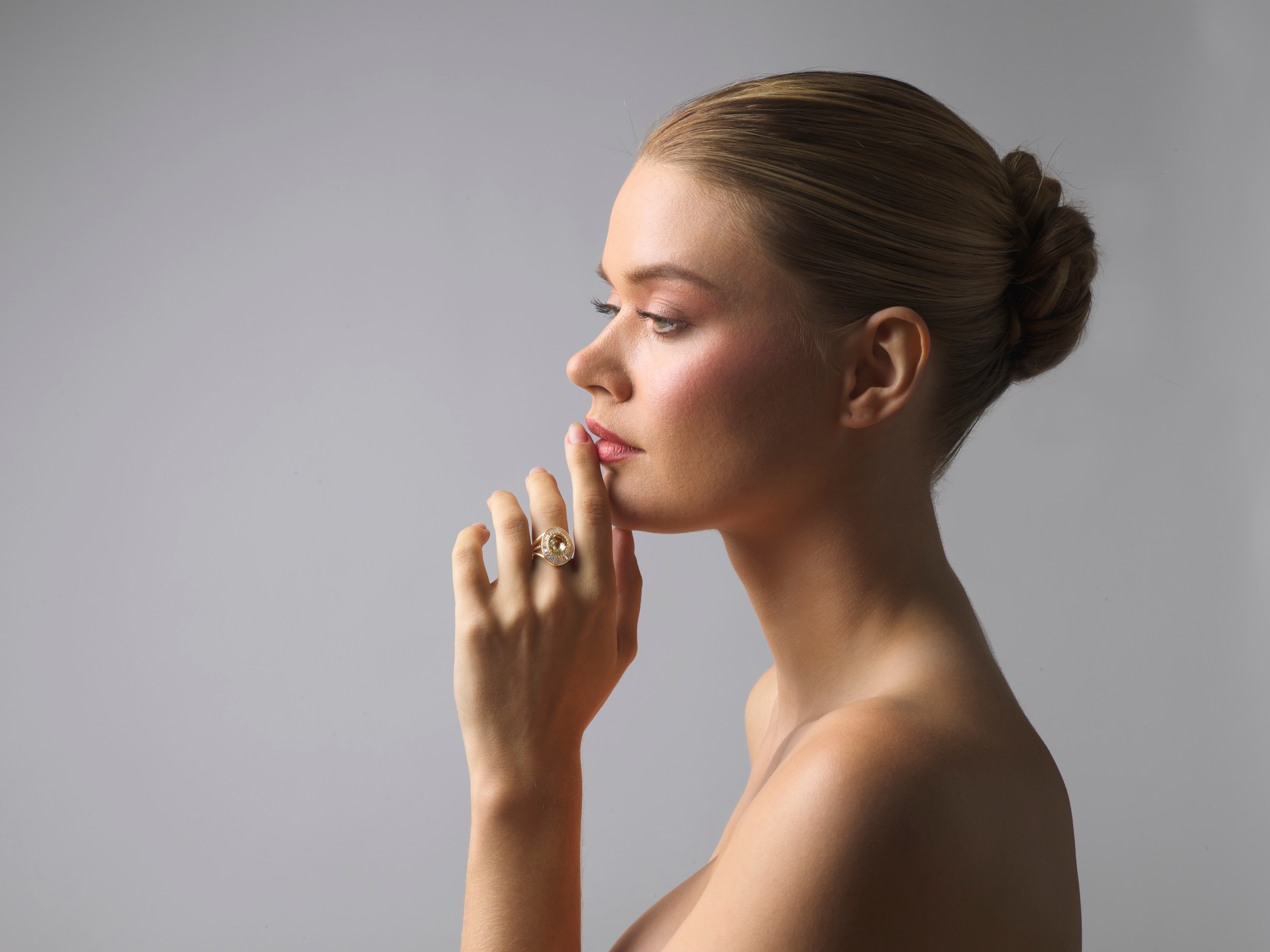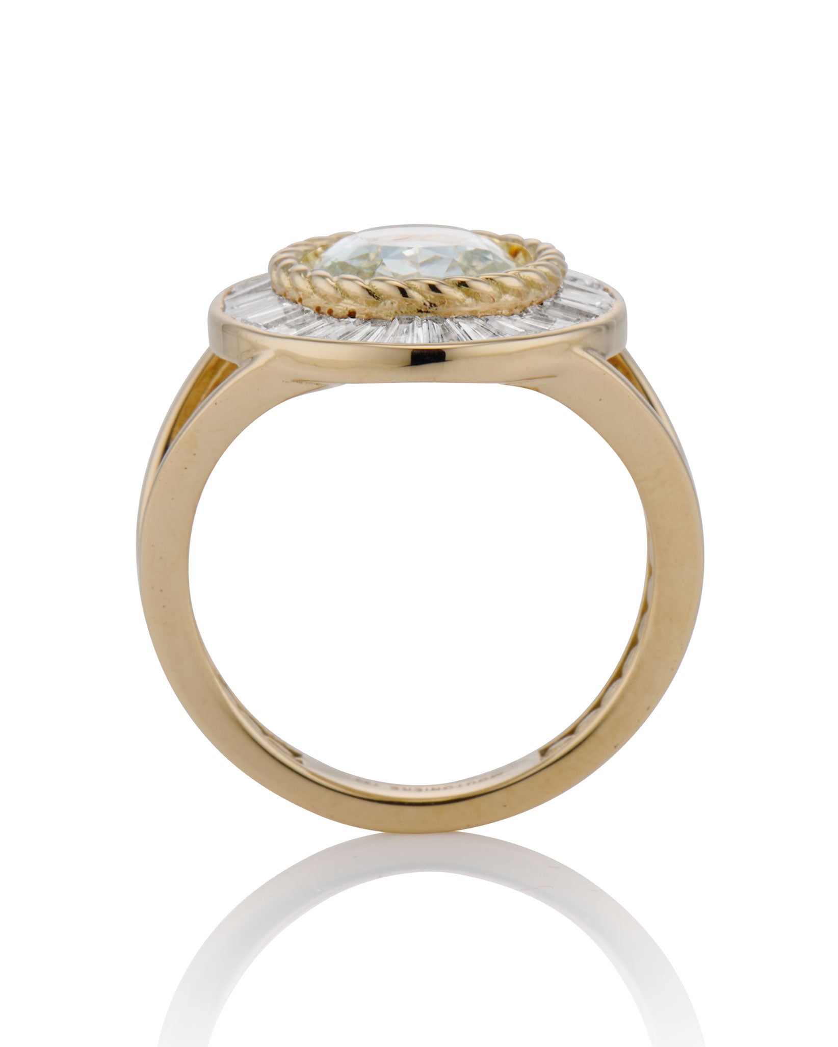 The gem is framed by Moutonière’s signature rope detail, a golden thread that binds sky to earth, brilliance to balance. Its sculptural split shank adds a sense of openness and air, allowing the light to pass through as it would through morning mist.