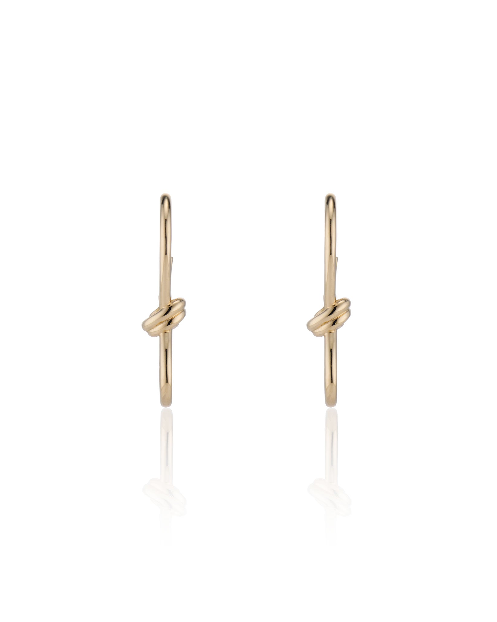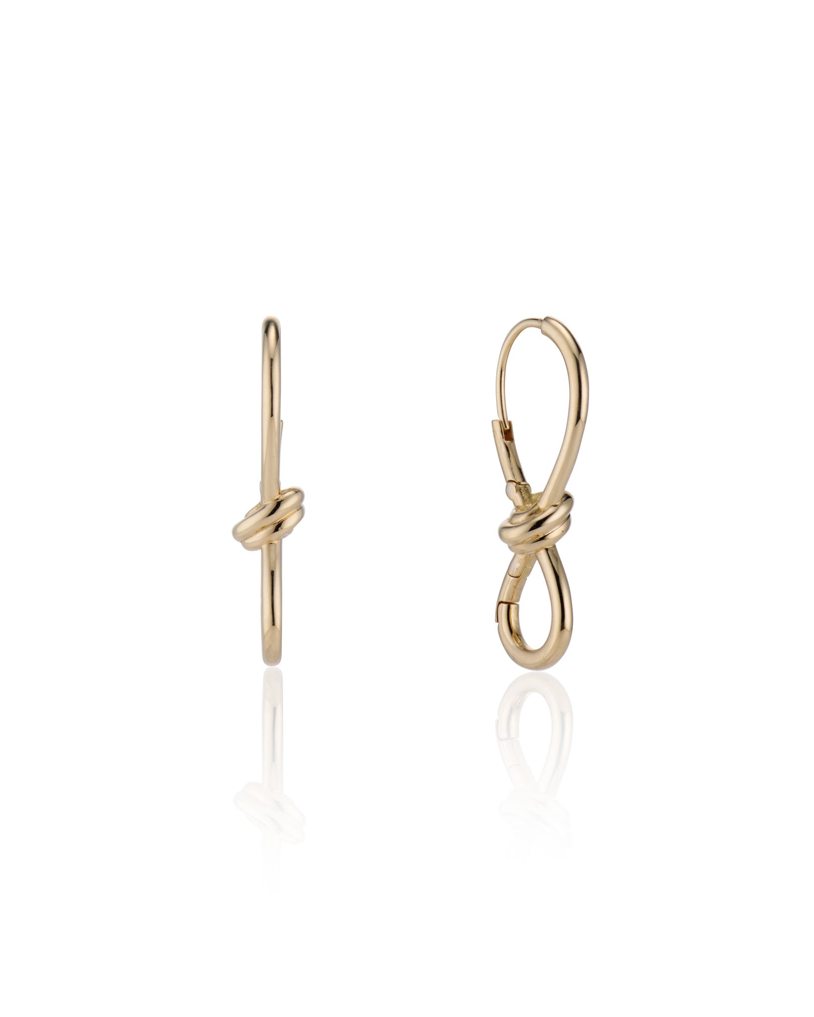 The Knot Earrings embody the essence of effortless elegance—a single gesture of 18 karat gold or sterling silver, looped and tied into form. Each earring is sculpted as a fluid line coiling into a delicate maritime knot before curving gracefully around the ear.