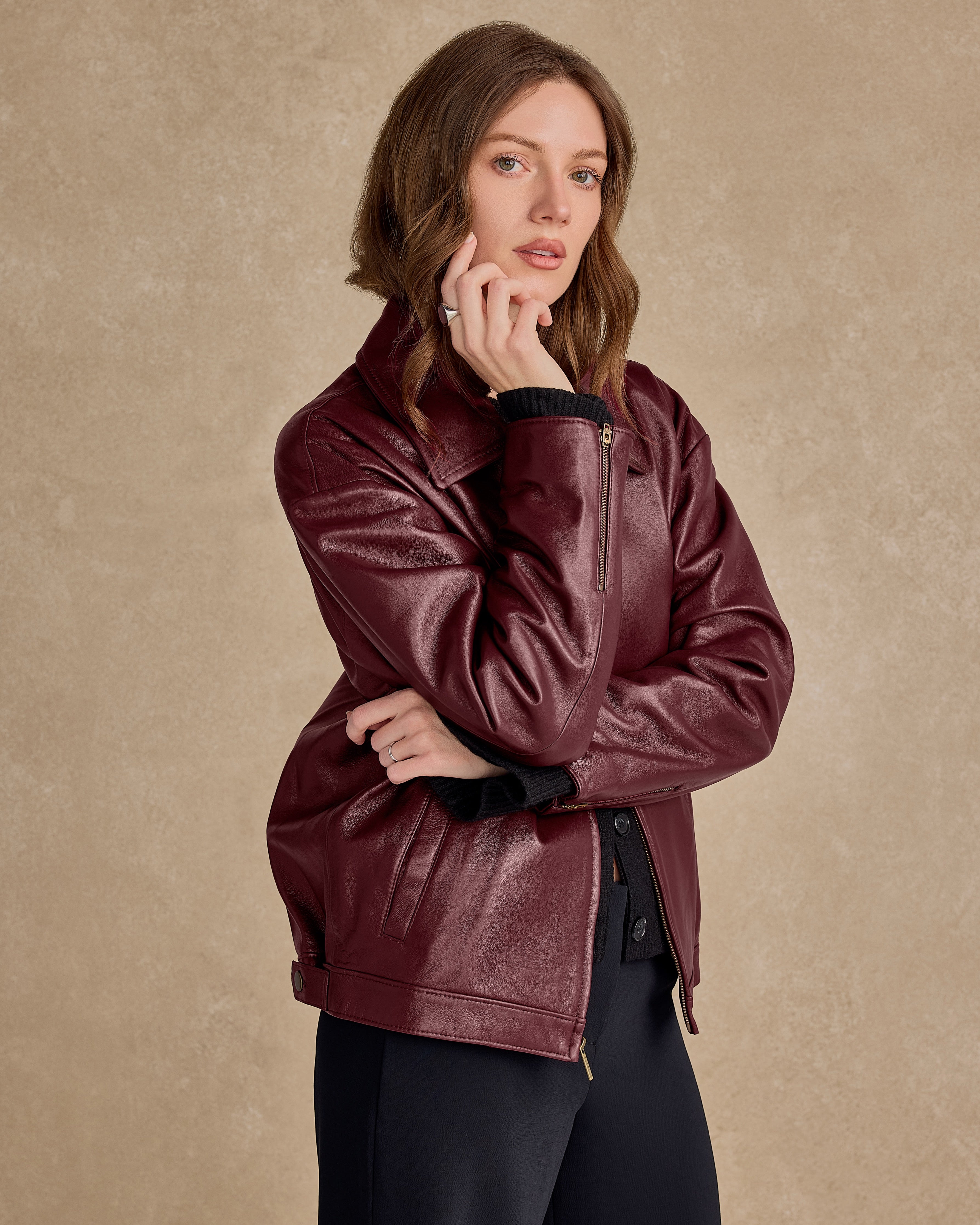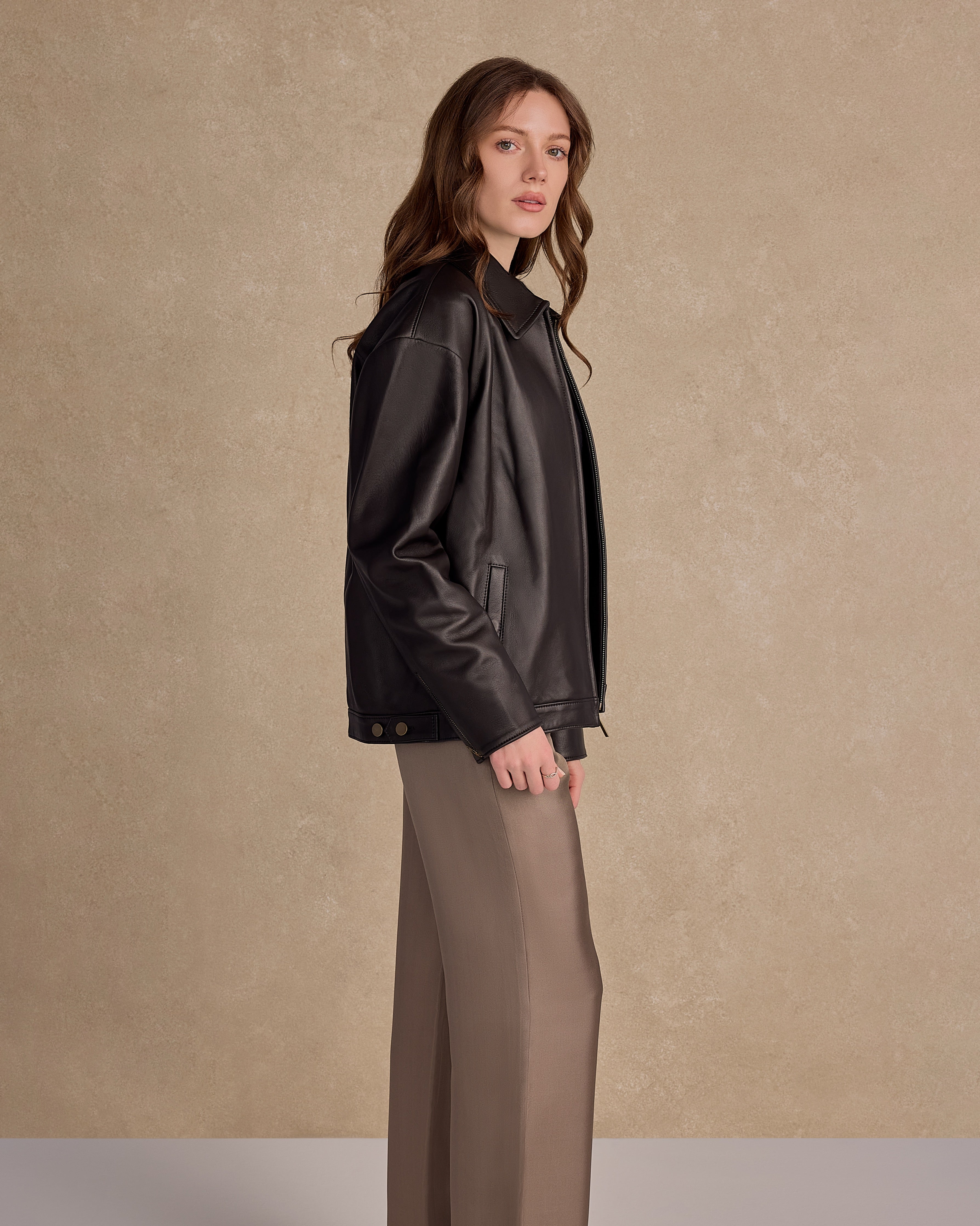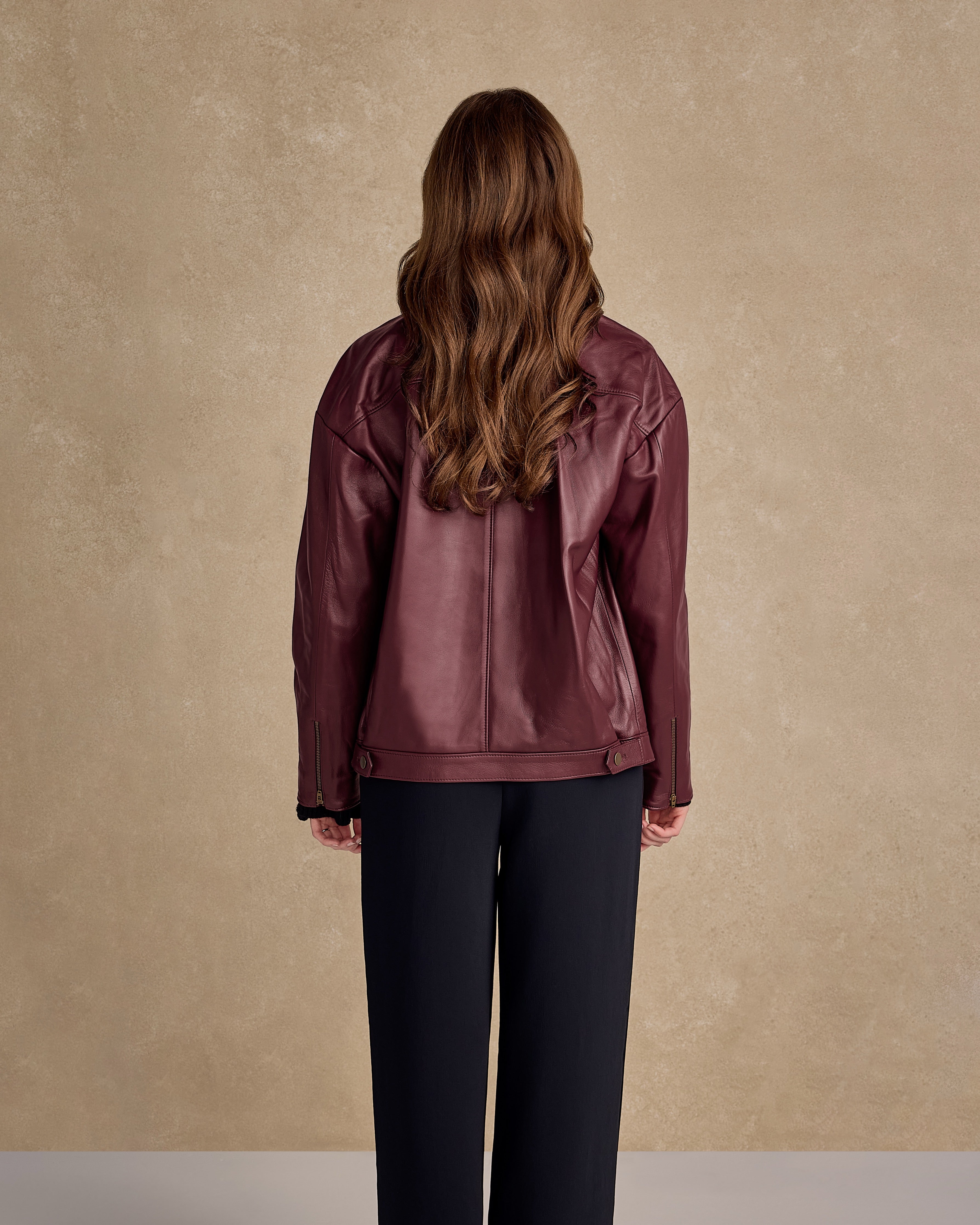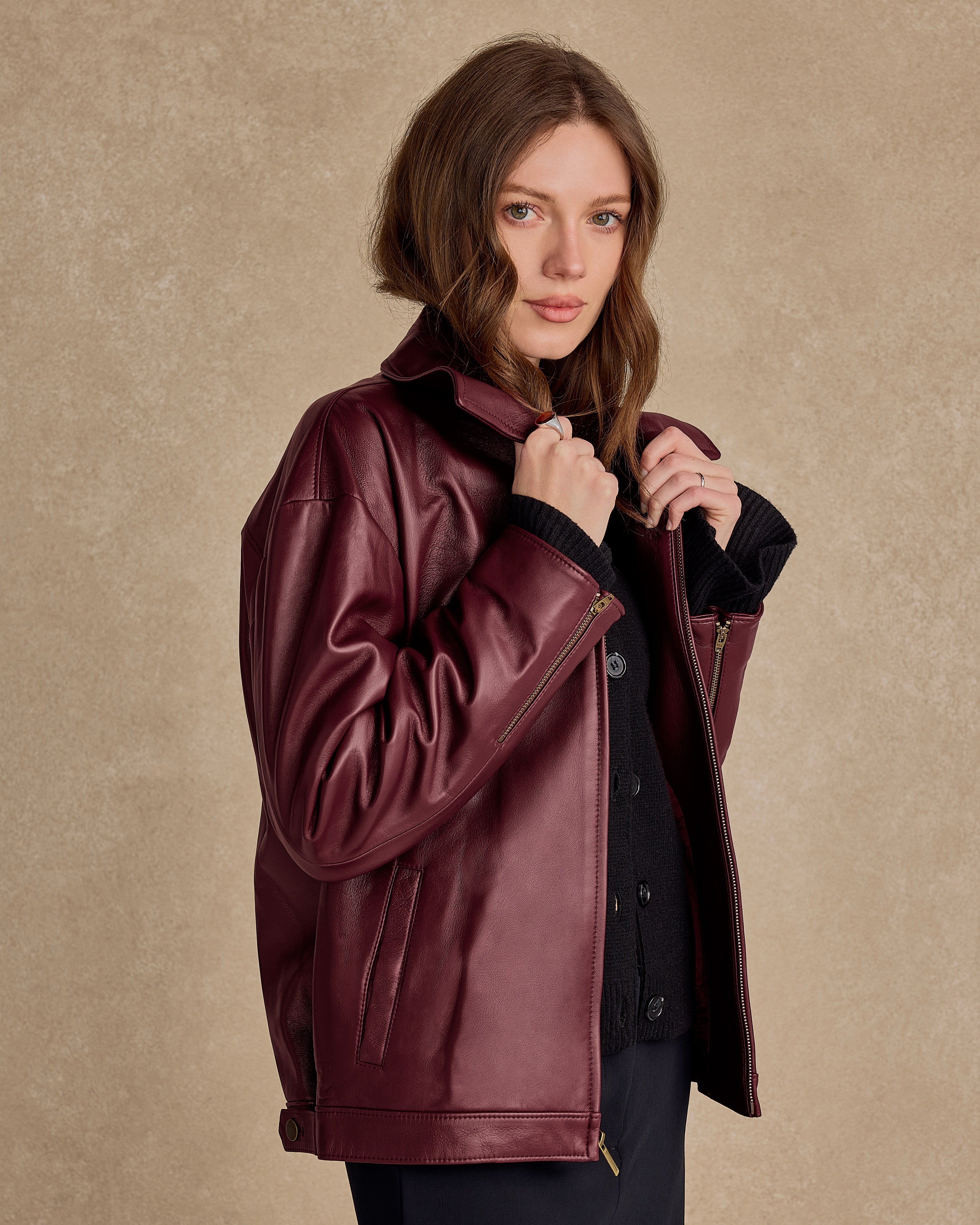 An elevated essential defined by structure and softness, the Classic Bomber reimagines a timeless silhouette in smooth lamb leather. Its clean architecture and fluid drape give the piece quiet sophistication, while a concealed zip and tonal details preserve a pure, uninterrupted silhouette.