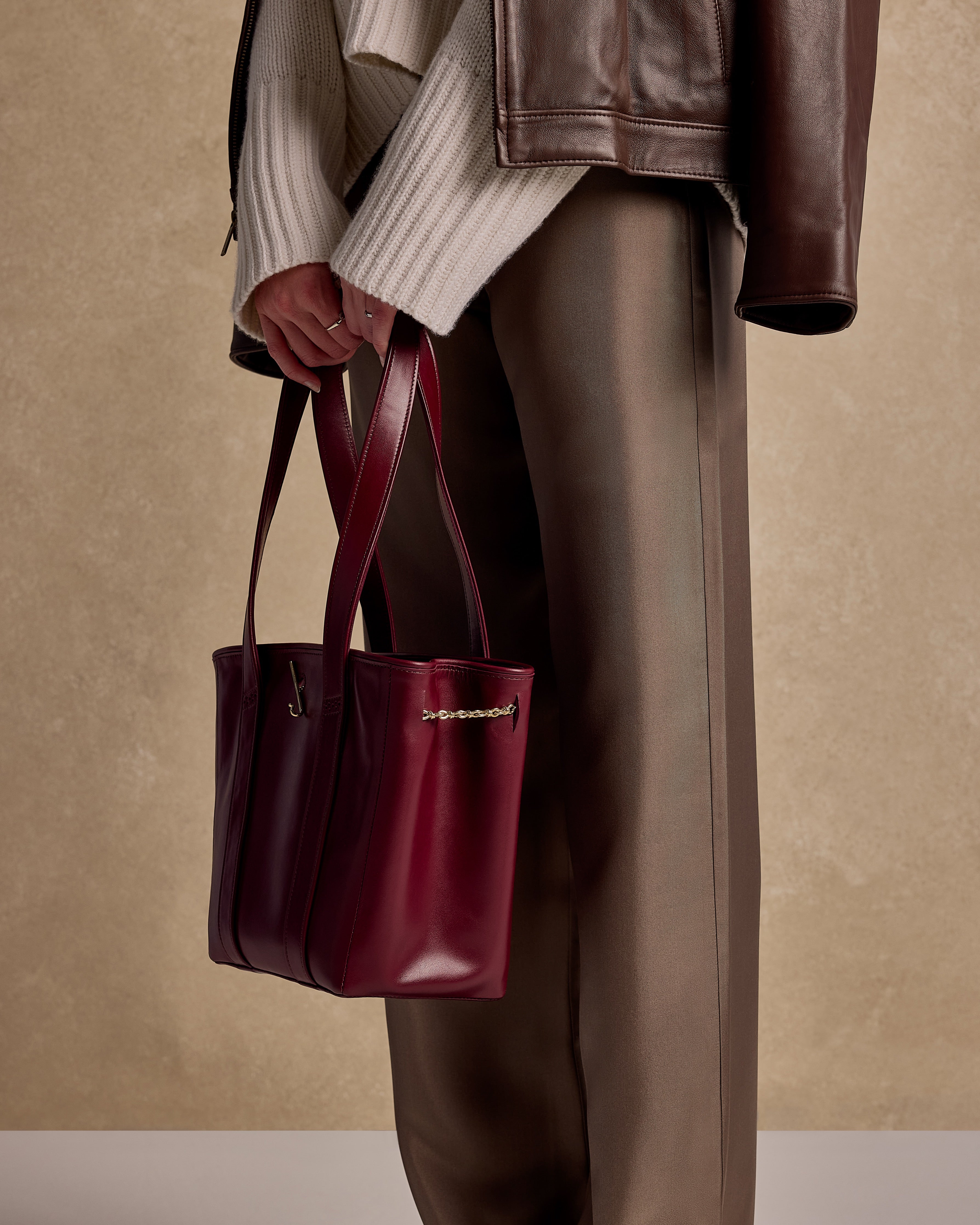Subtle snap tabs at the waist allow for a personalized fit, magnetic closures keep the front pockets secure but accessible,and a 100% silk lining ensures movement and ease. Layers effortlessly over shirts, knits, or evening pieces with refined restraint. Offered in Matte Black, Chocolate Brown, and rich Oxblood.