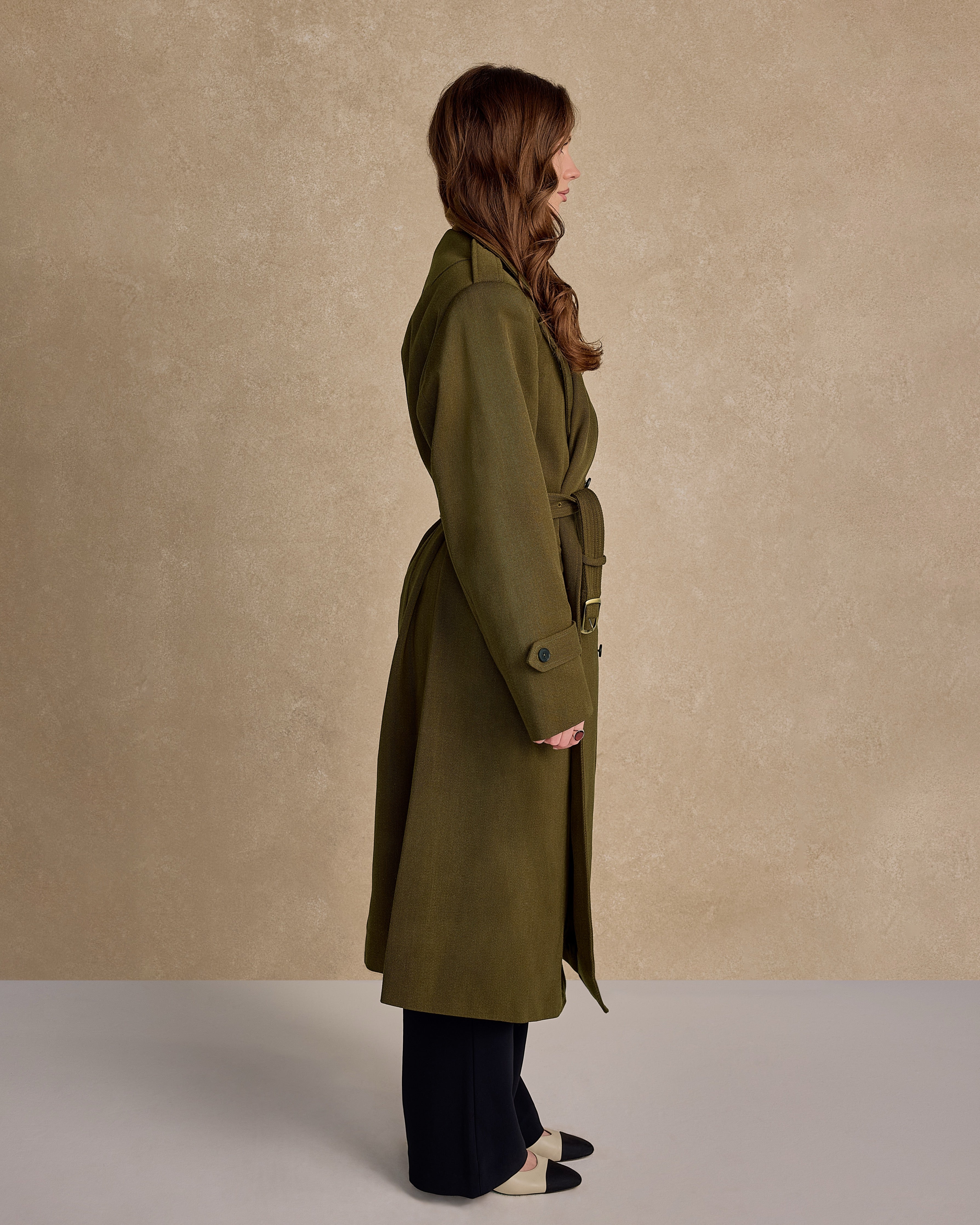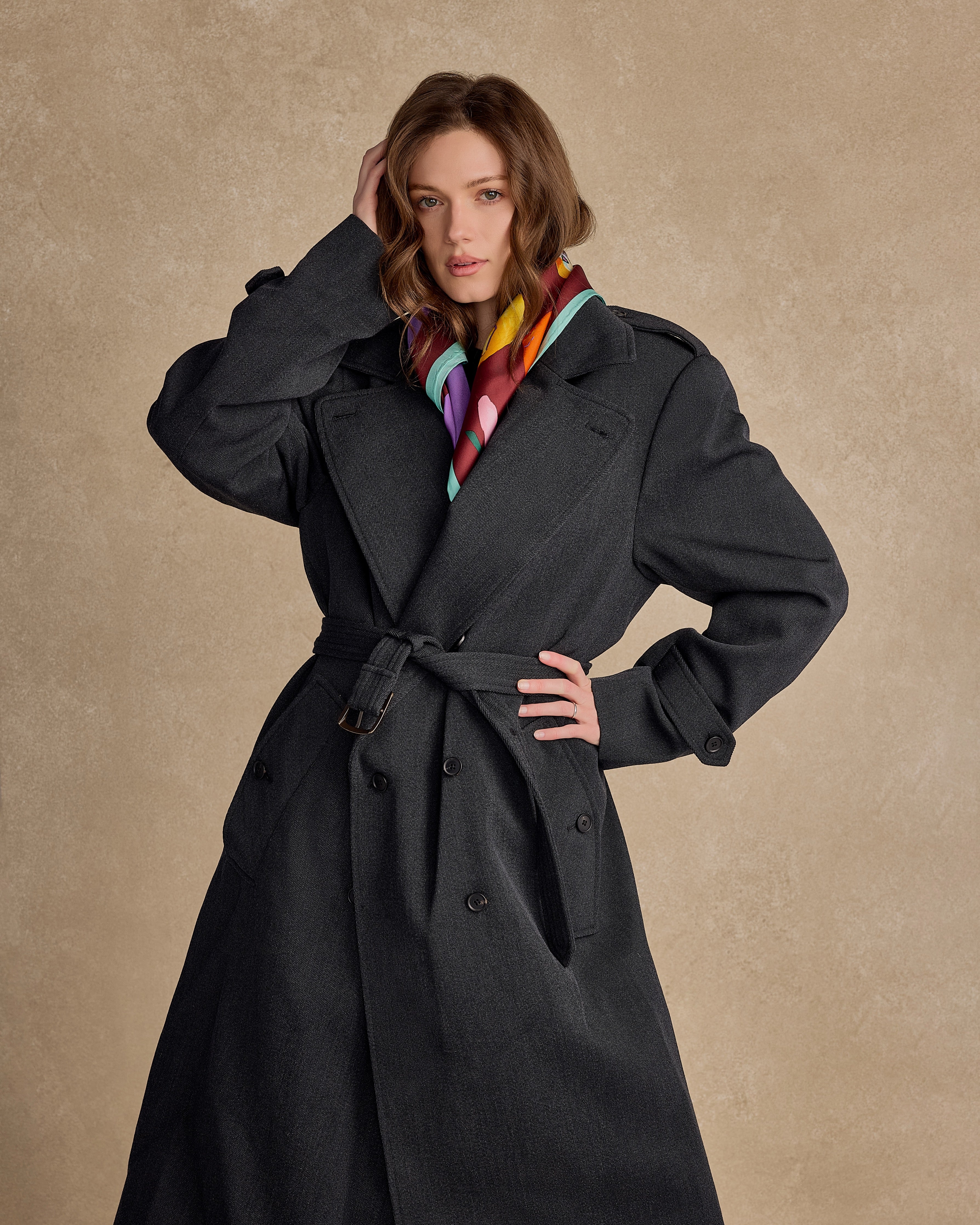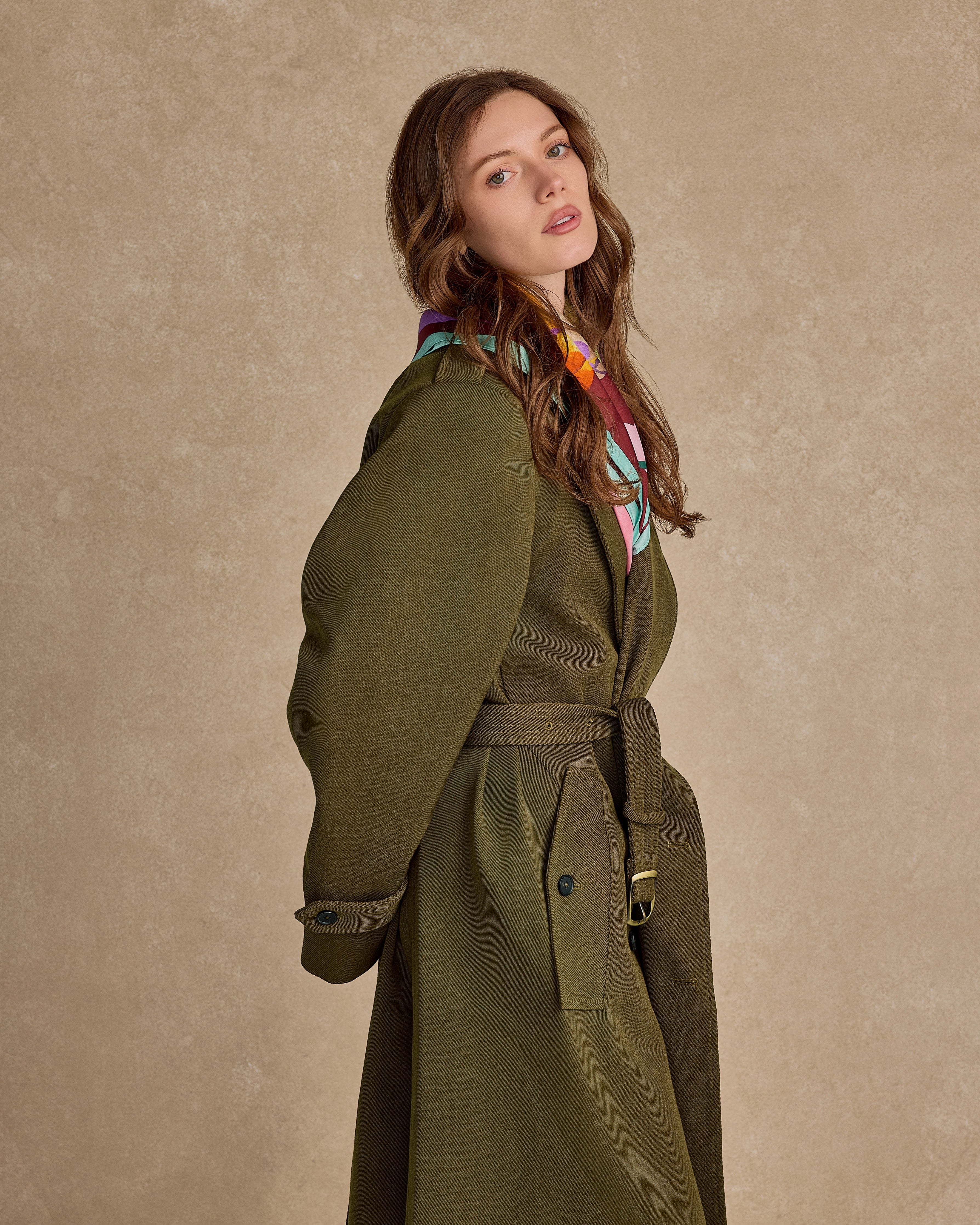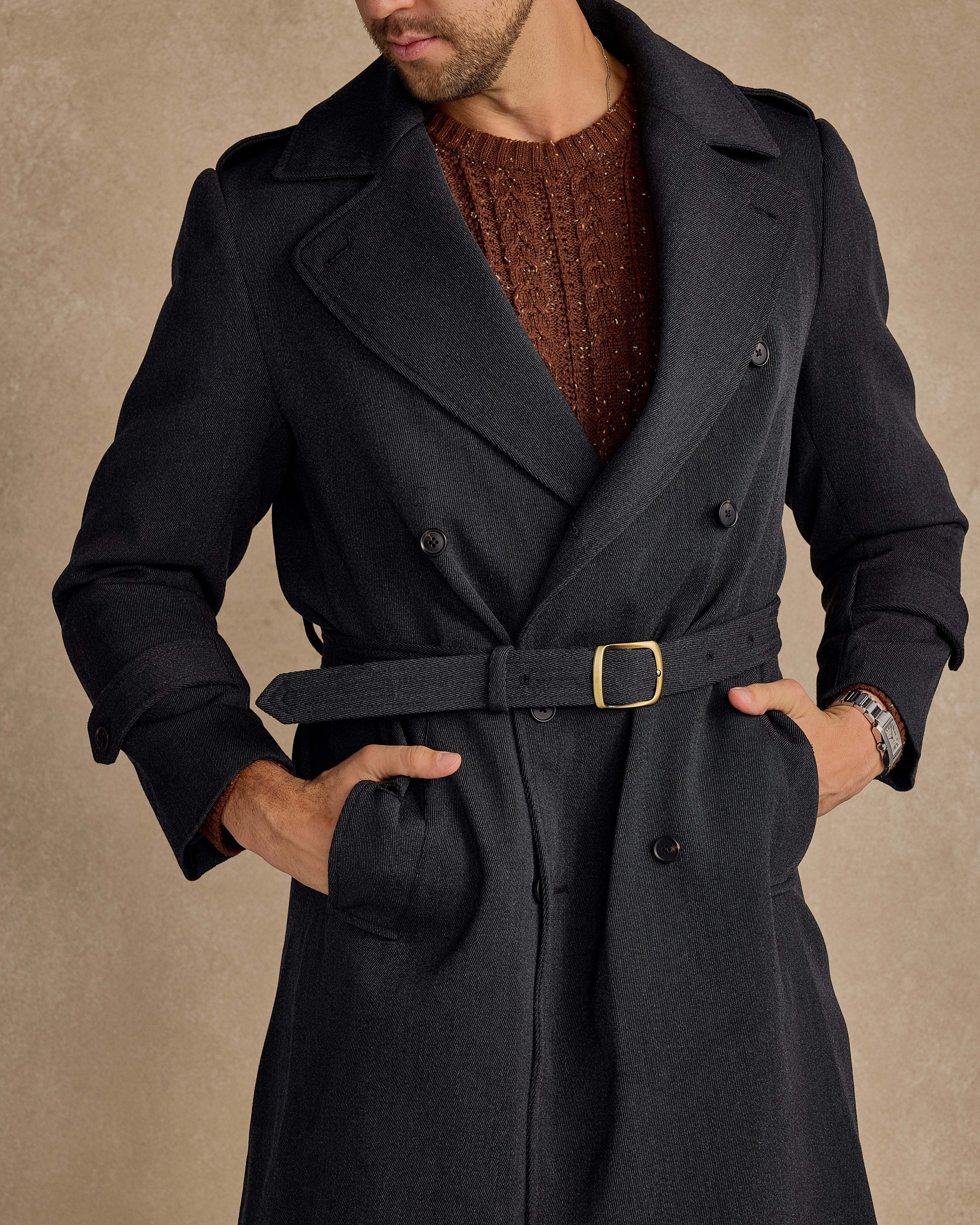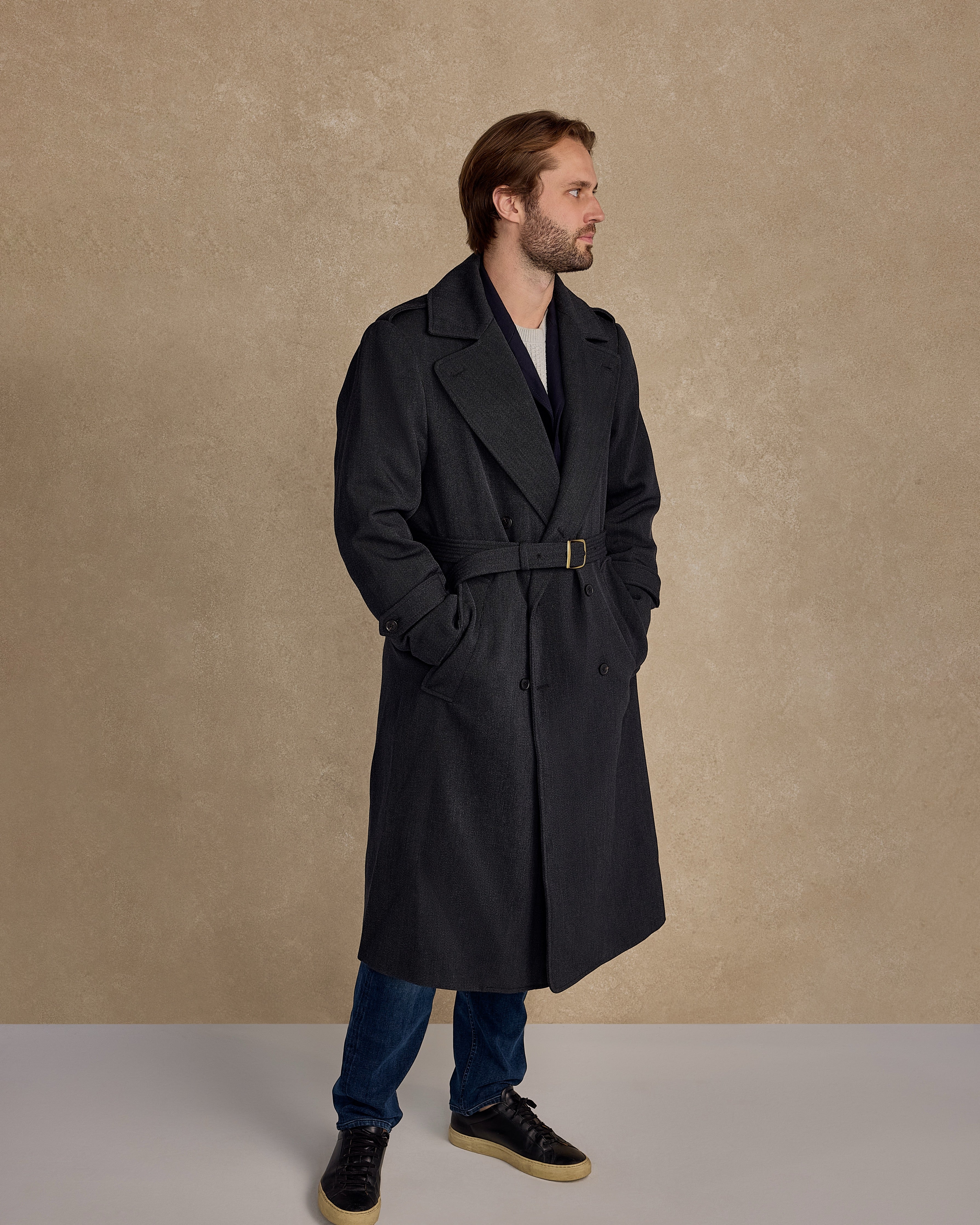A swelled front edge and expanding back vent give structure and movement, tailoring details drawn from Savile Row bespoke. Worn belted for definition or loose for a relaxed drape, collar up or down, the classic trench is as adaptable as its heritage demands: field coat, spy coat, or commuter’s armor.