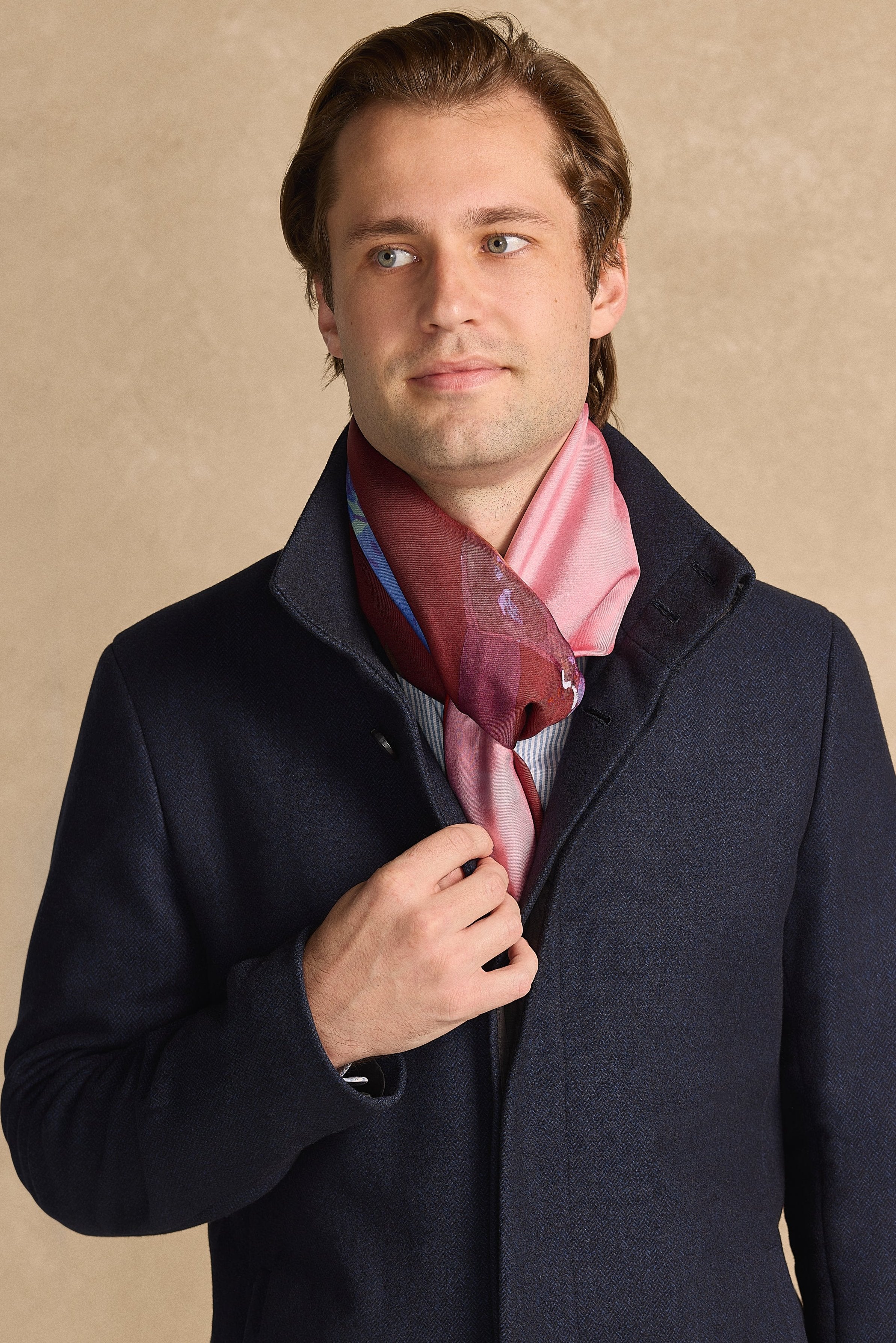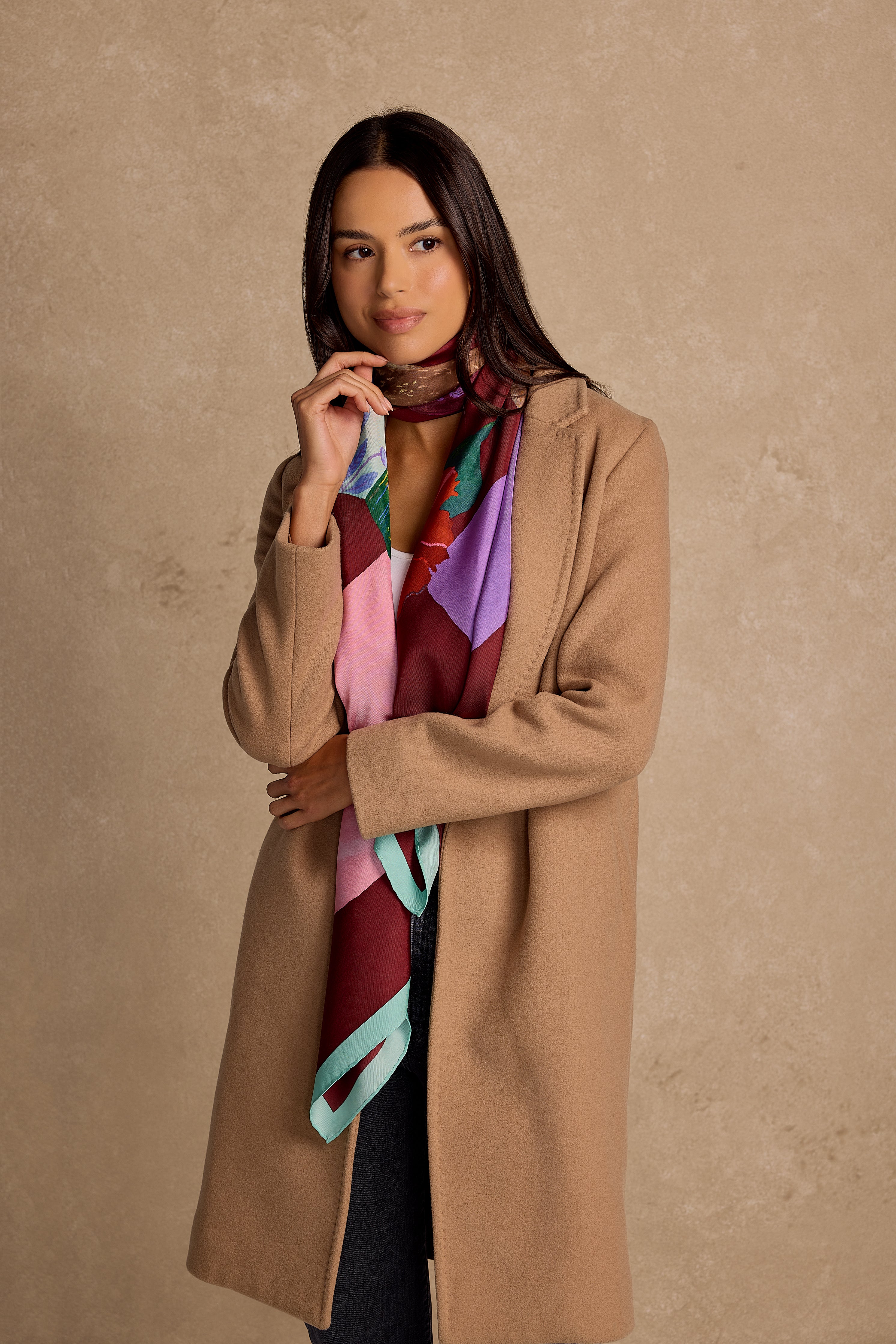 Scarf in silk twill with hand-rolled edges (100% silk).