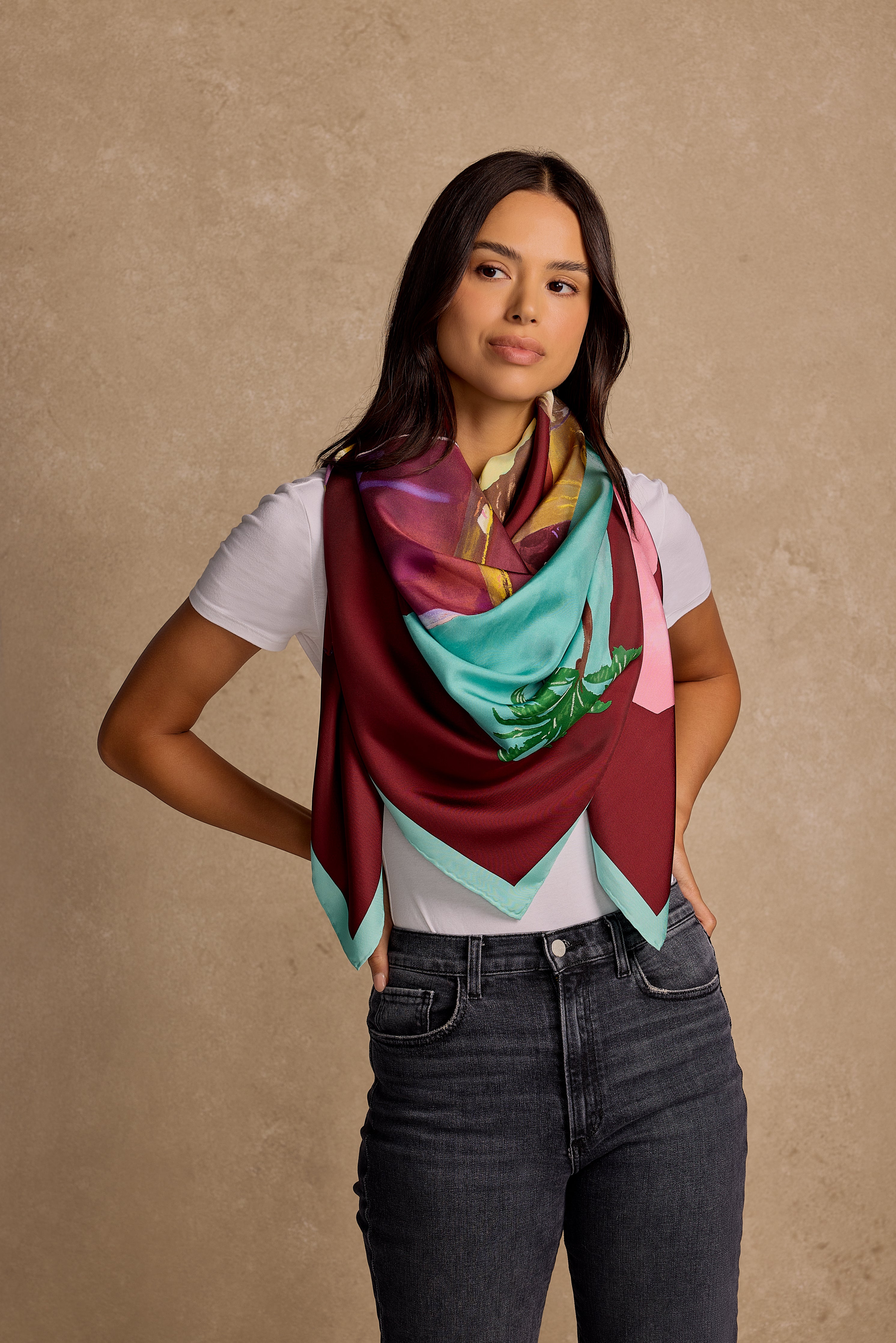 Dimensions: 53" x 53" | As this scarf is hand-rolled, the dimensions indicated may vary.