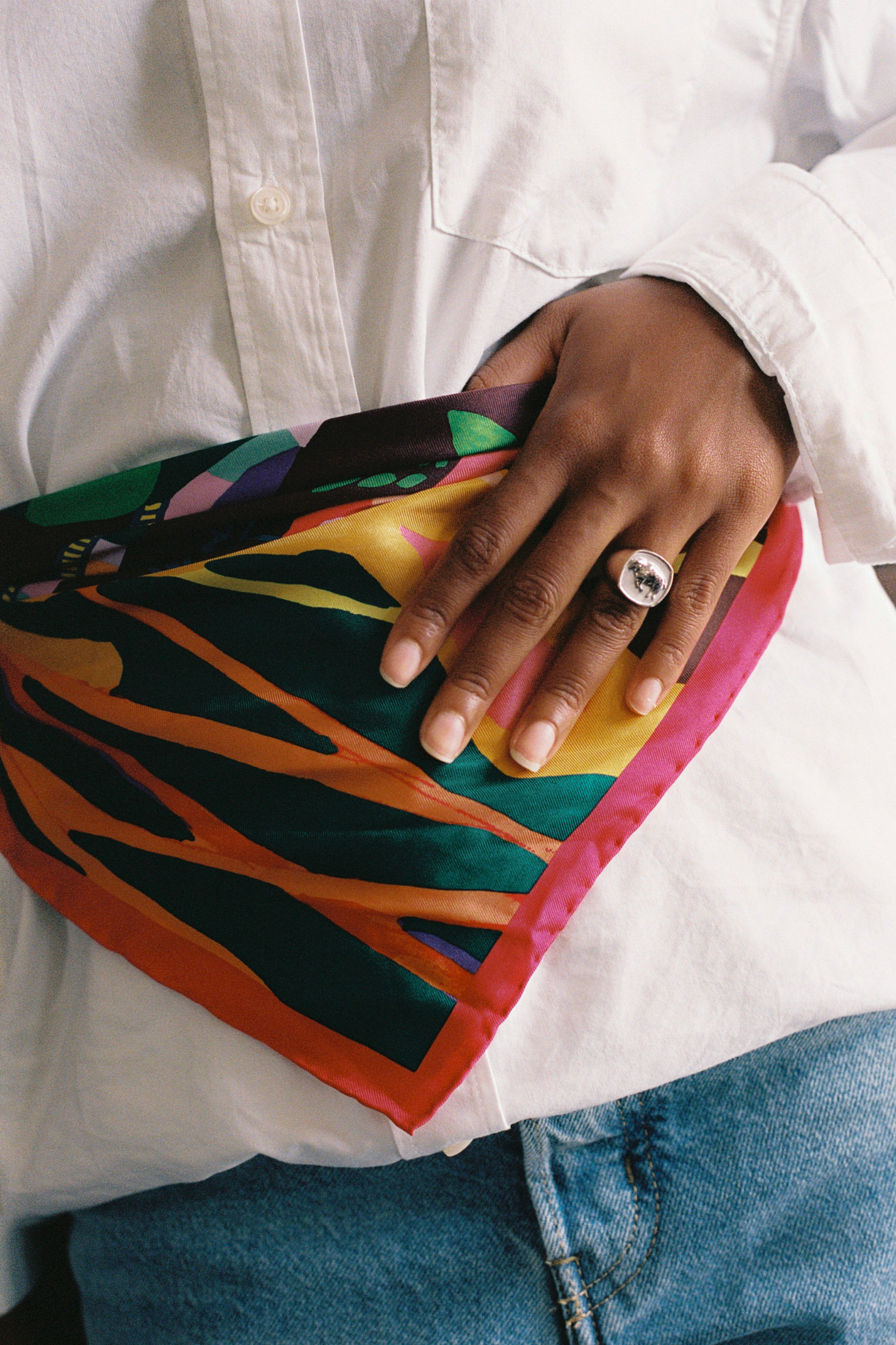A limited edition scarf of unmatched quality. Neither reworked nor redesigned, these scarves are presented in their purest form, staying true to the original drawings of the artist. This essential Moutonière accessory complements any outfit and can be worn in many ways—around your neck, as a top, at the waist, or as a headscarf. The scarf can also be framed as a limited edition work of art, perfect for display on any wall. Each scarf is numbered from 1 to 125 and comes with a certificate of authenticity.